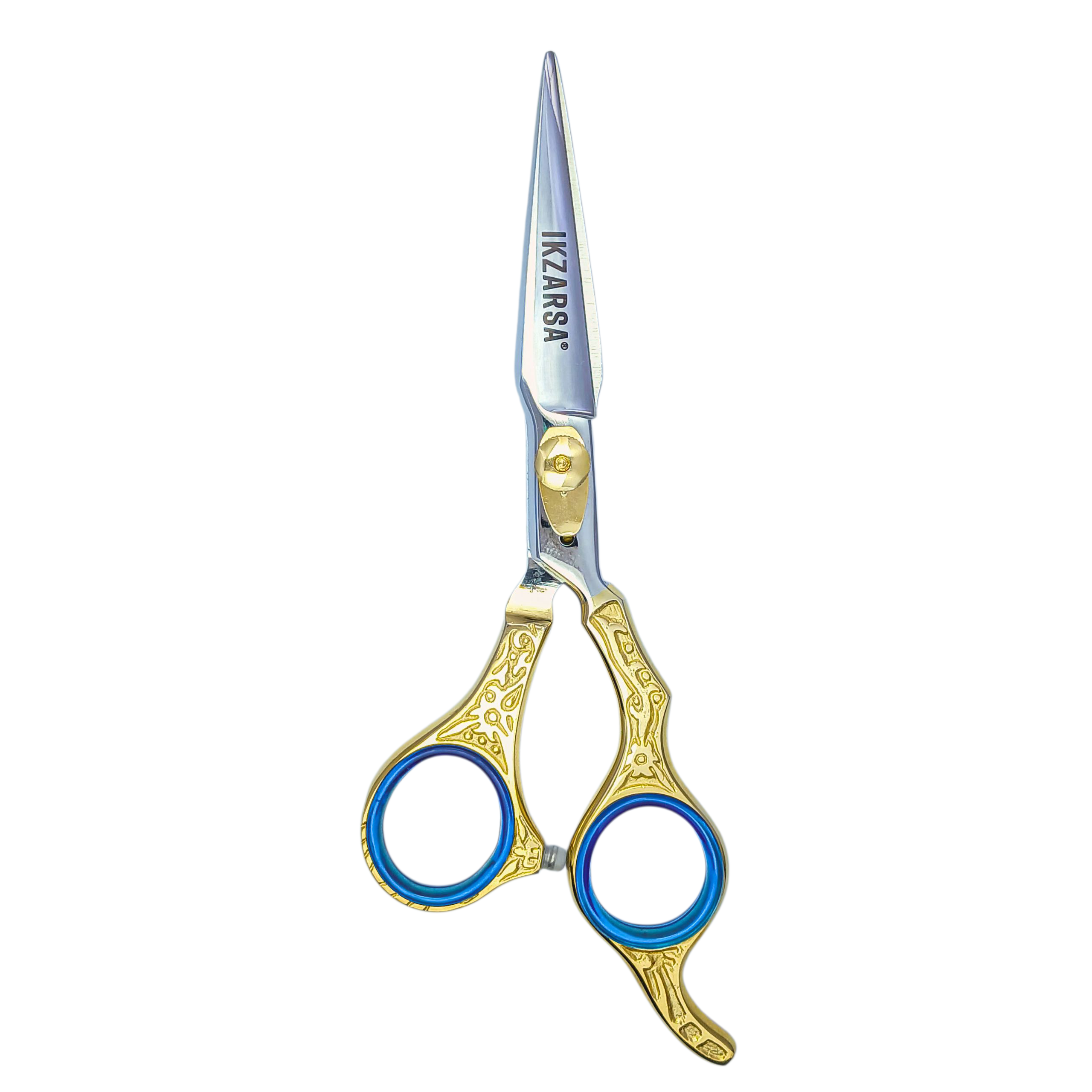 Featuring a stylish gold handle paired with a polished silver blade, these scissors deliver a premium, luxurious look while maintaining professional functionality. The convex edge blades ensure ultra-smooth, razor-sharp cutting, perfect for clean lines, seamless blending, and advanced detailing work.