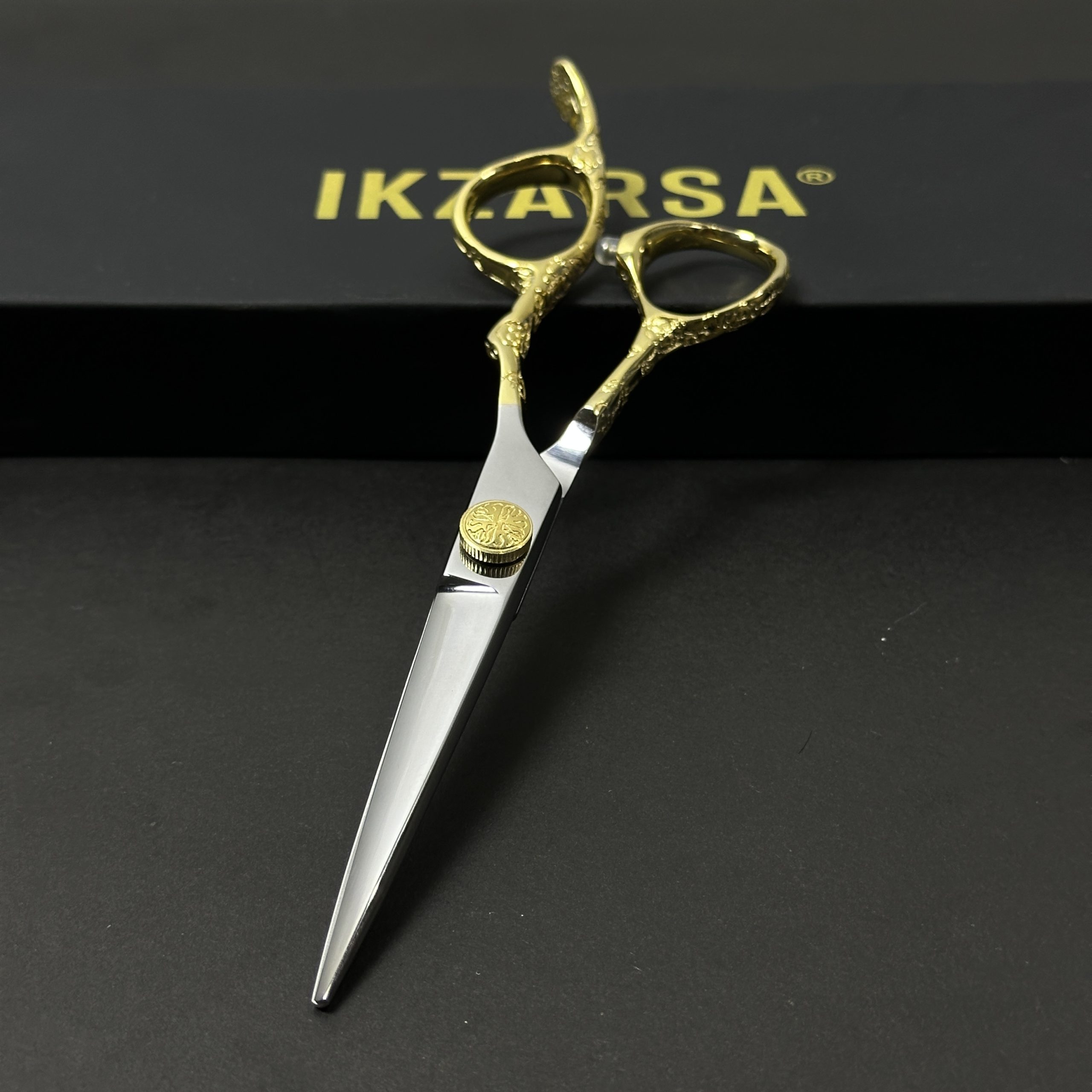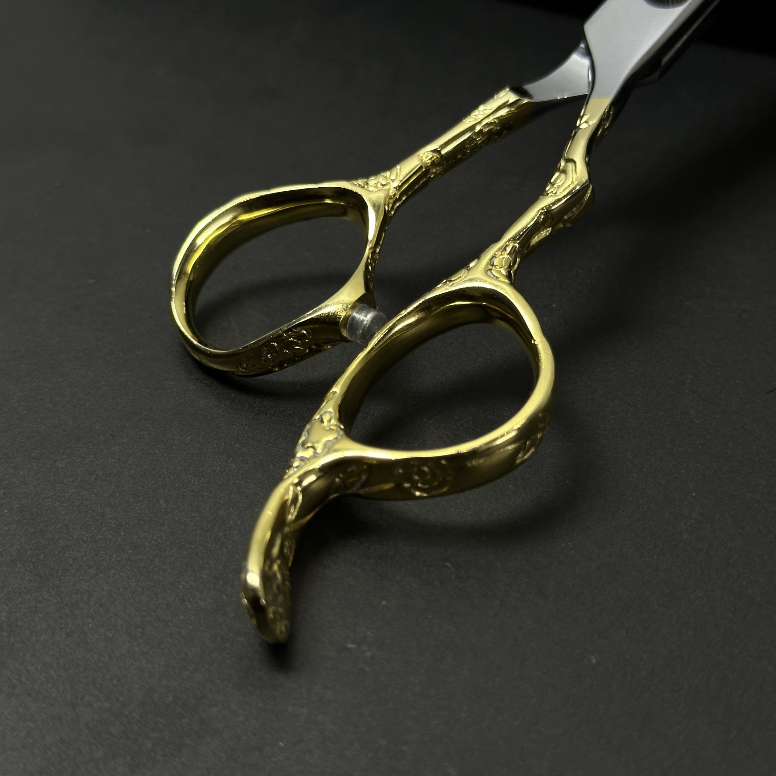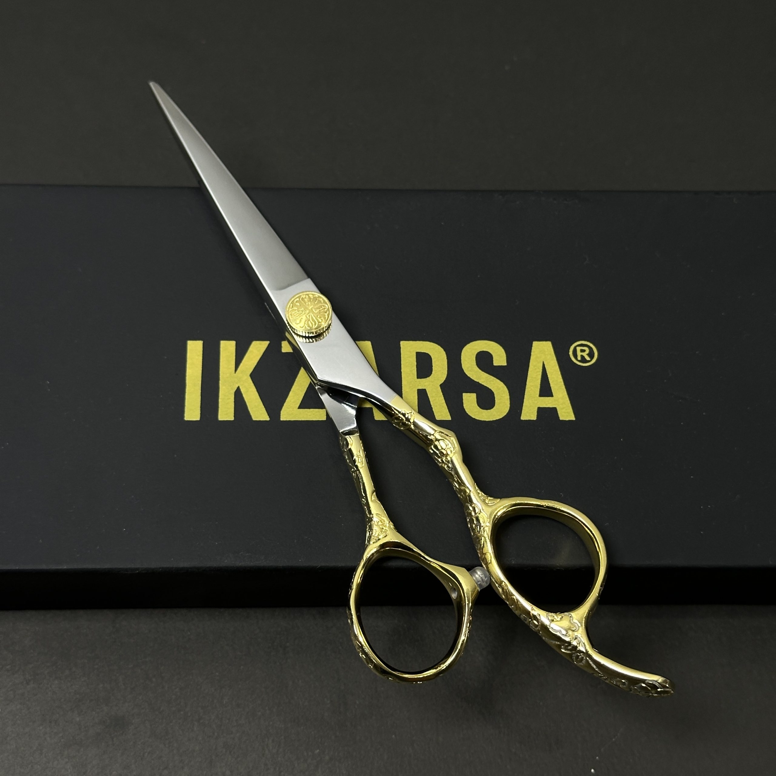 The elegant 24 carat gold plated finish not only enhances the luxurious appearance of the scissors but also adds an extra layer of protection against corrosion and daily wear. Designed with an ergonomic offset handle, these scissors reduce hand strain and provide maximum comfort and control during extended cutting sessions.